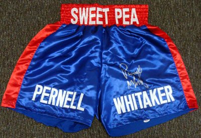 Pernell Whitaker Autographed Sweet Pea Boxing Trunks PSA/DNA Review