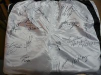 Signed Boxing Greatest Everlast Boxing Trunks By Muhammad Ali, Oscar De La Hoya, Evander Holyfield, Joe Frazier, Leon Spinks, Mike Tyson, Ken Norton, Julio Cesar Chavez, Roberto Duran, Larry Holmes, Lennox Lewis, Sugar Ray Leonard, George Forman and . 14 Signatures in all Review